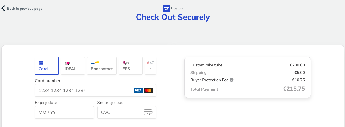 - Trustap payment screen showing the buyer fee as Buyer Protection Fee.